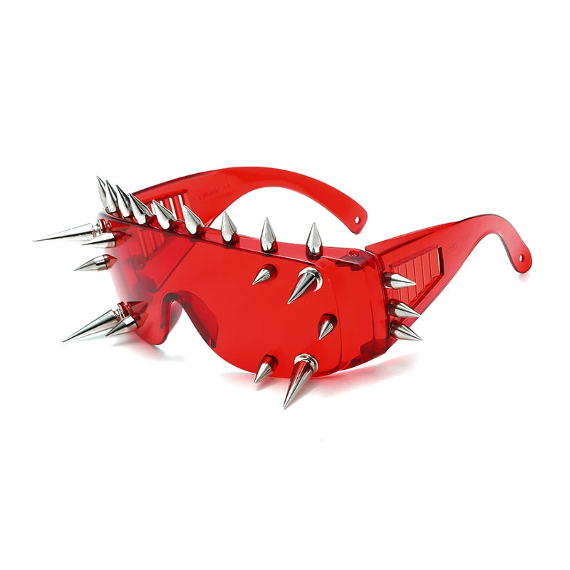 Unleash your wild side with these steampunk-inspired rivet spike sunglasses — a bold fusion of metal, punk attitude, and Y2K aesthetics, perfect for parties, festivals, and fearless streetwear looks.