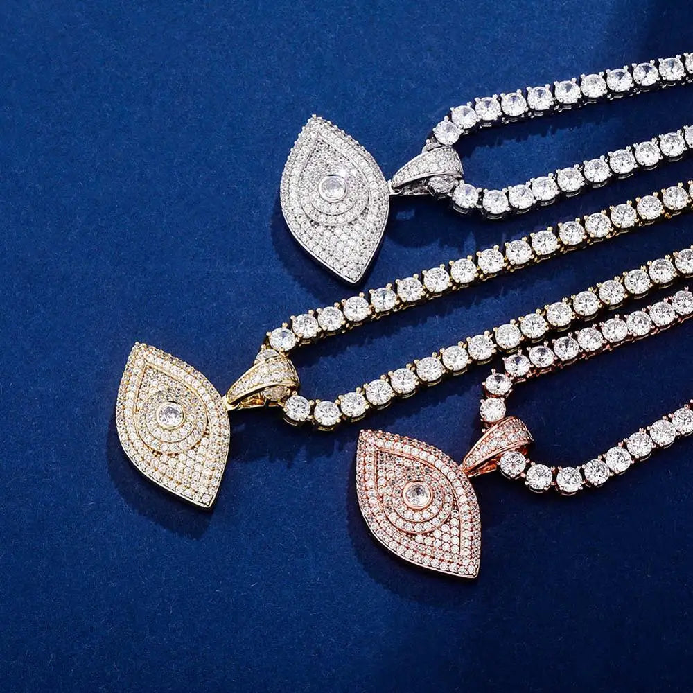TOPGRILLZ Evil Eye Pendant Necklace – Iced Out Cubic Zirconia Hip Hop Fashion Jewelry for Men & Women